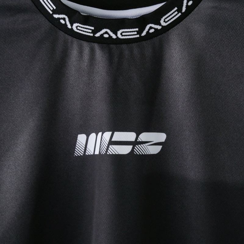 大きく『AE』の文字がうっすら入ったデザインは普段も使用できるおしゃれな1枚。袖と襟リブに入った文字がワンポイントです。