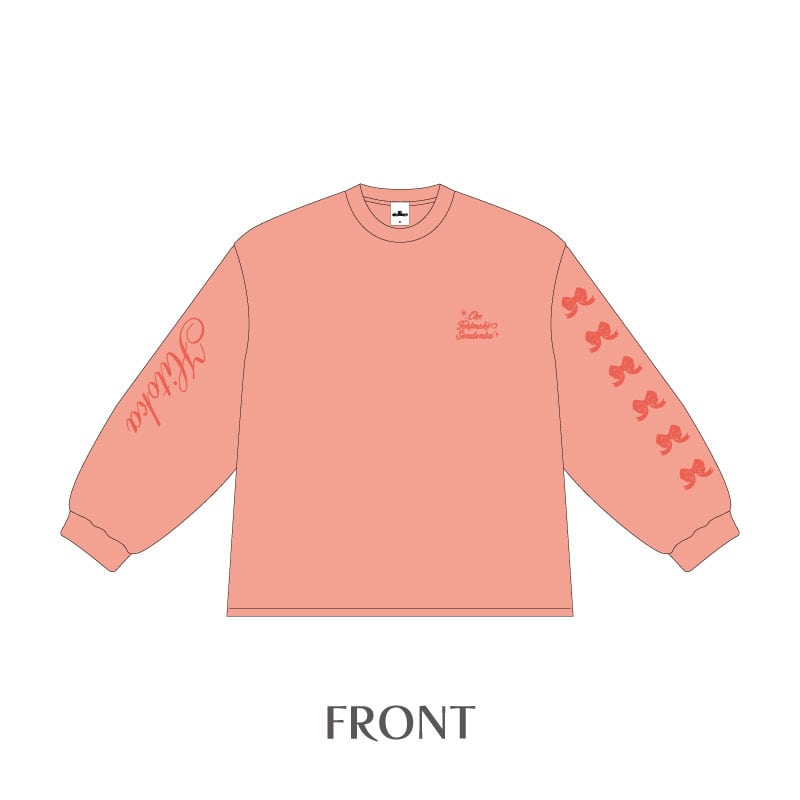 胸元のデザインは刺繍になっており、袖にはメンバー名と6個のリボン、バックプリントには大きくエレガントなデザインが入っております!少しオーバーサイズでサラッと着やすいボディーに仕上がりました♪