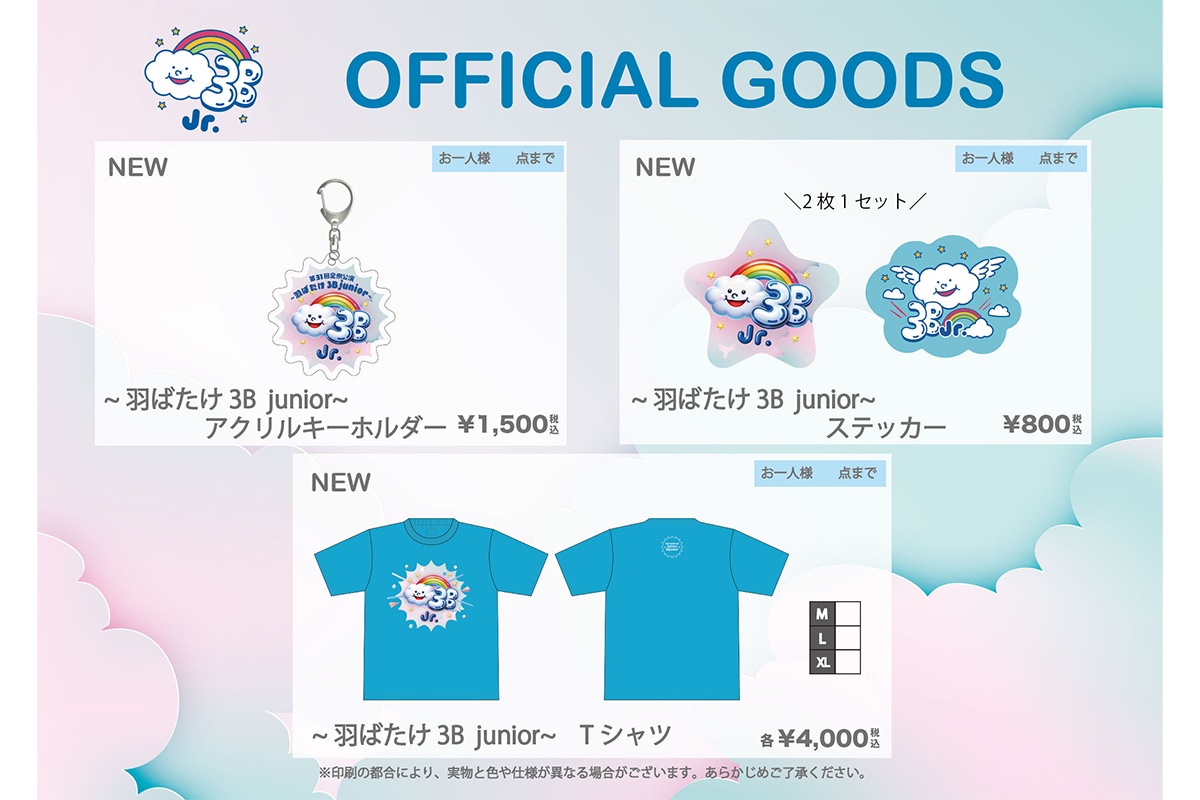 2月12日(木)に行われた『第31回定例公演~羽ばたけ3B junior~』オフィシャルグッズの【事後通販】を明日2月19日(木)19時から開始します。
